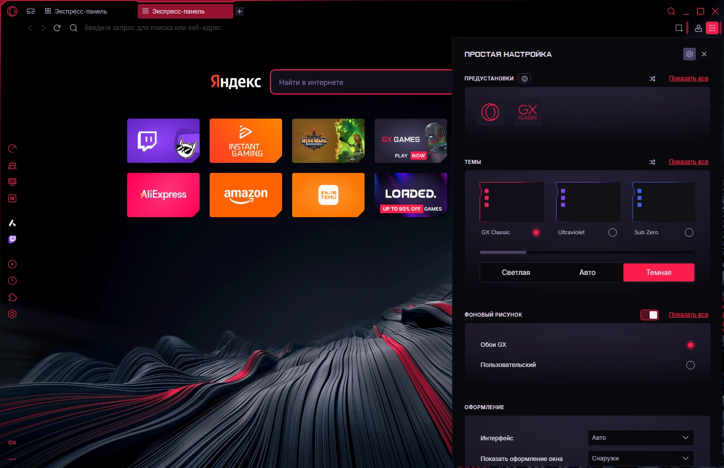GX ДИЗАЙН• Вы можете настроить ваш браузер, как пожелаете: выбирайте любой цвет, разные спецэффекты и темы.