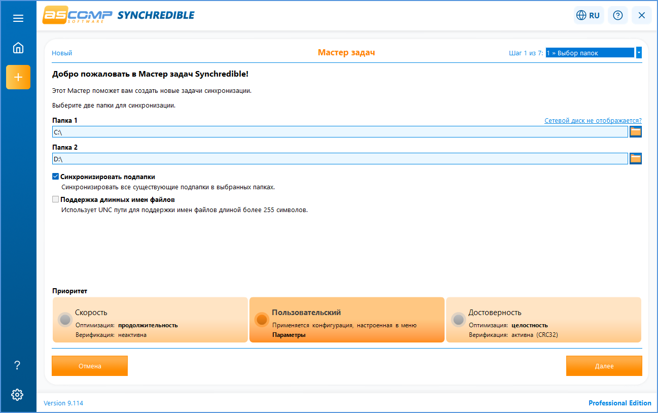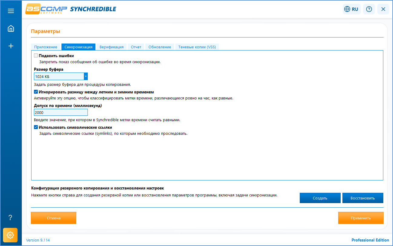 • Поддержка синхронизации в одном и двух направлениях.