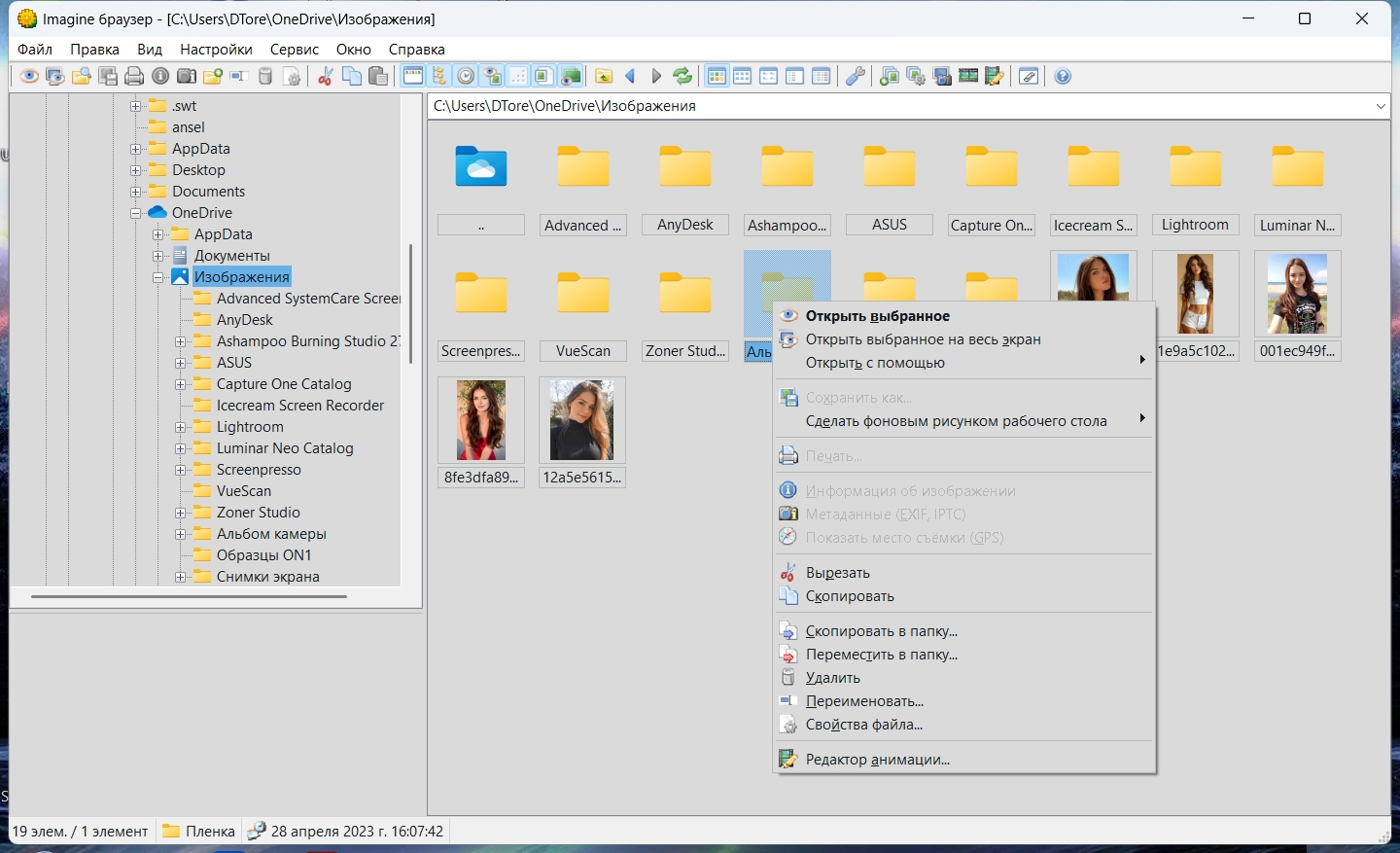 Бесплатный просмотрщик изображений для Windows - Imagine. Это отличная альтернатива многим другим популярным бесплатным вьюерам, таким как IrfanView, XnView или FastStone Image Viewer. Это приложение с низким использованием ресурсов, которое будет работать на всех версиях ОС Windows. Несколько особенностей: высокая скорость просмотра изображений, извлечение по одному или все кадры из анимационных файлов, возможность показать подробную информацию файлов изображения и анимации, показ Exif и IPTC информацией, показ или скрытие прозрачности и т.д. Программа работает со многими форматами изображений и имеет поддержку цифровых камер RAW формата , поддержка всех популярных форматов архивов, поддержка форматов высокого динамического диапазона.