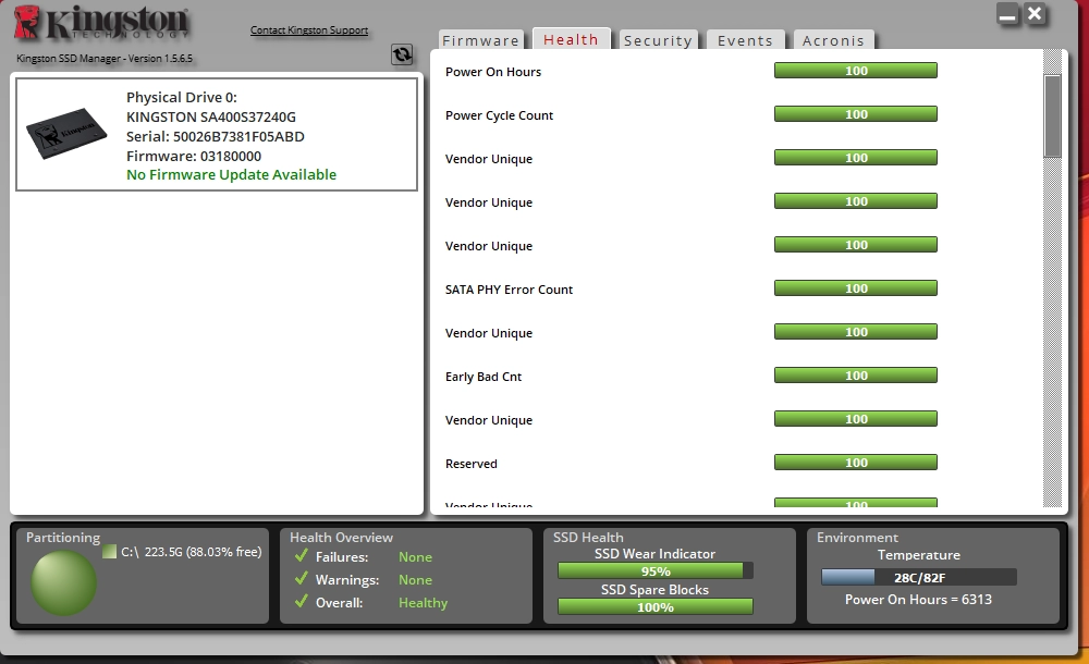 • Просмотр и экспорт подробных отчетов об исправности и состоянии накопителя