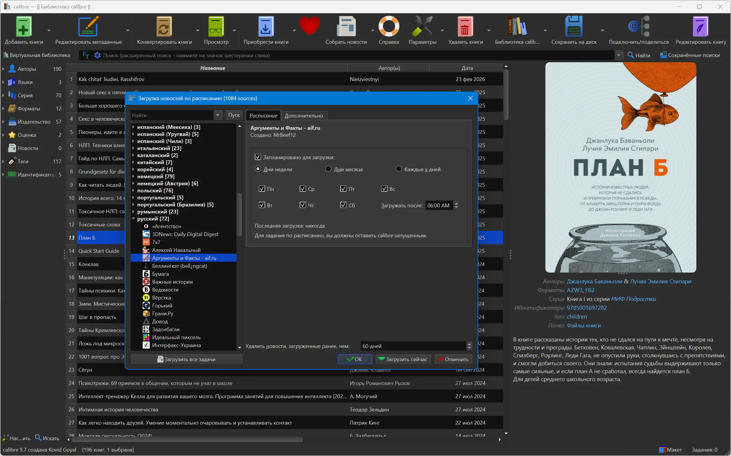 Calibre содержит уже 3 сотни источников новостей. И прочитав мануал, вам не составит труда добавить новые источники