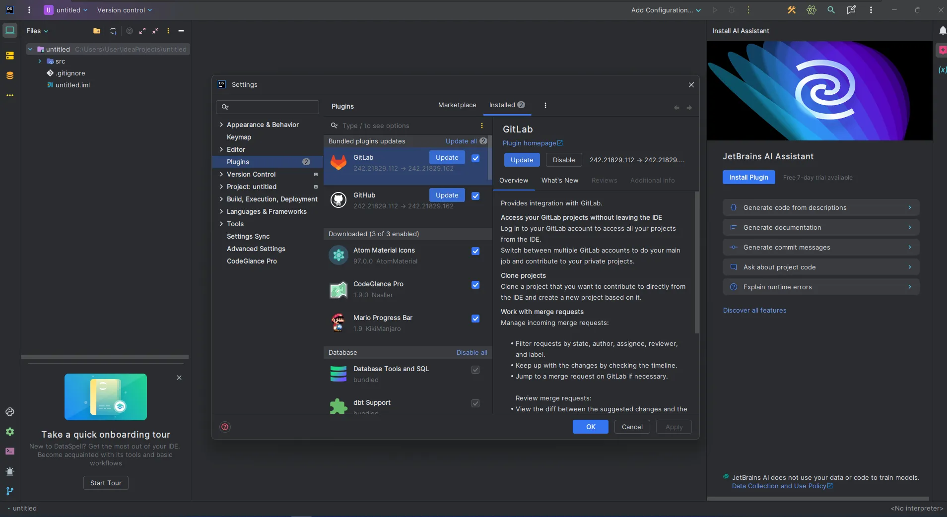 • Плагины → В вашем распоряжении множество плагинов — для эмуляции Vim, работы с Docker, дополнительных VCS, настройки внешнего вида и пр.