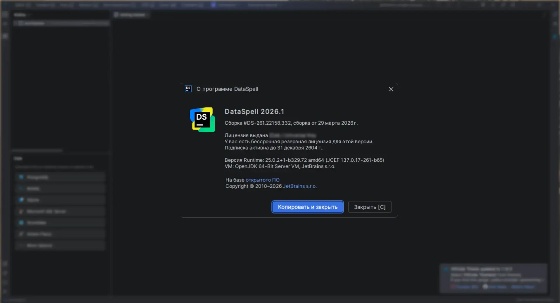 Что нового:Новое в DataSpellАктивация:• Активация происходит автоматически во время установки, не забудьте отметить соответствующий чек-бокс.