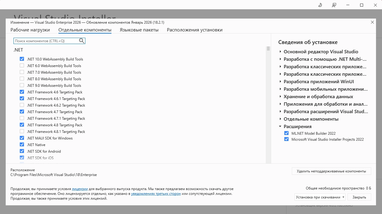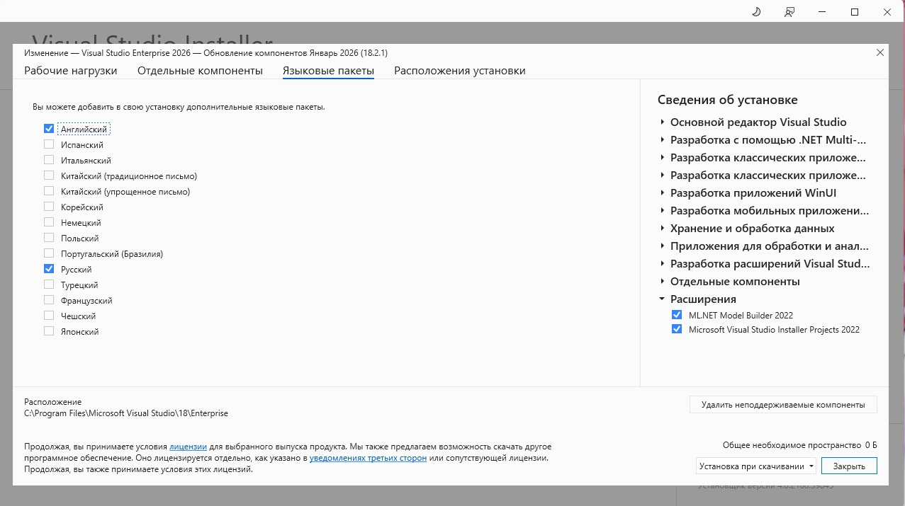 Изменения в версии:Visual Studio 2026 version 18.0.2Контрольные суммы образа:Файл: Microsoft Visual Studio 2026 Enterprise 18.2.1.iso