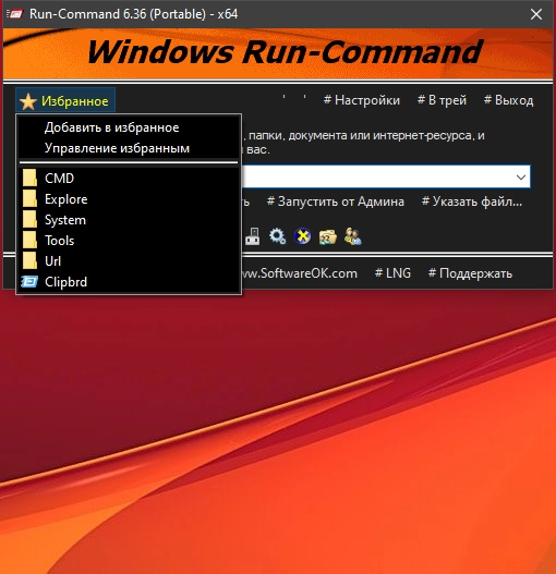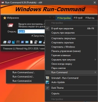 Run-Command - замена стандартной функции Windows под названием "Выполнить" - естественно тут вы получите гораздо больше возможностей, и после запуска это видно сразу. Например из главного окна можно сразу запустить нужный вам элемент от имени Администратора, под строкой ввода есть 5 иконок, которые дают быстрый доступ к частым элементам, например редактору реестра и так далее. Вы сможете сами добавлять в избранное частые команды, чтобы потом каждый раз не набивать их. Можно группировать ваши команды по категориям, это тоже очень удобно.