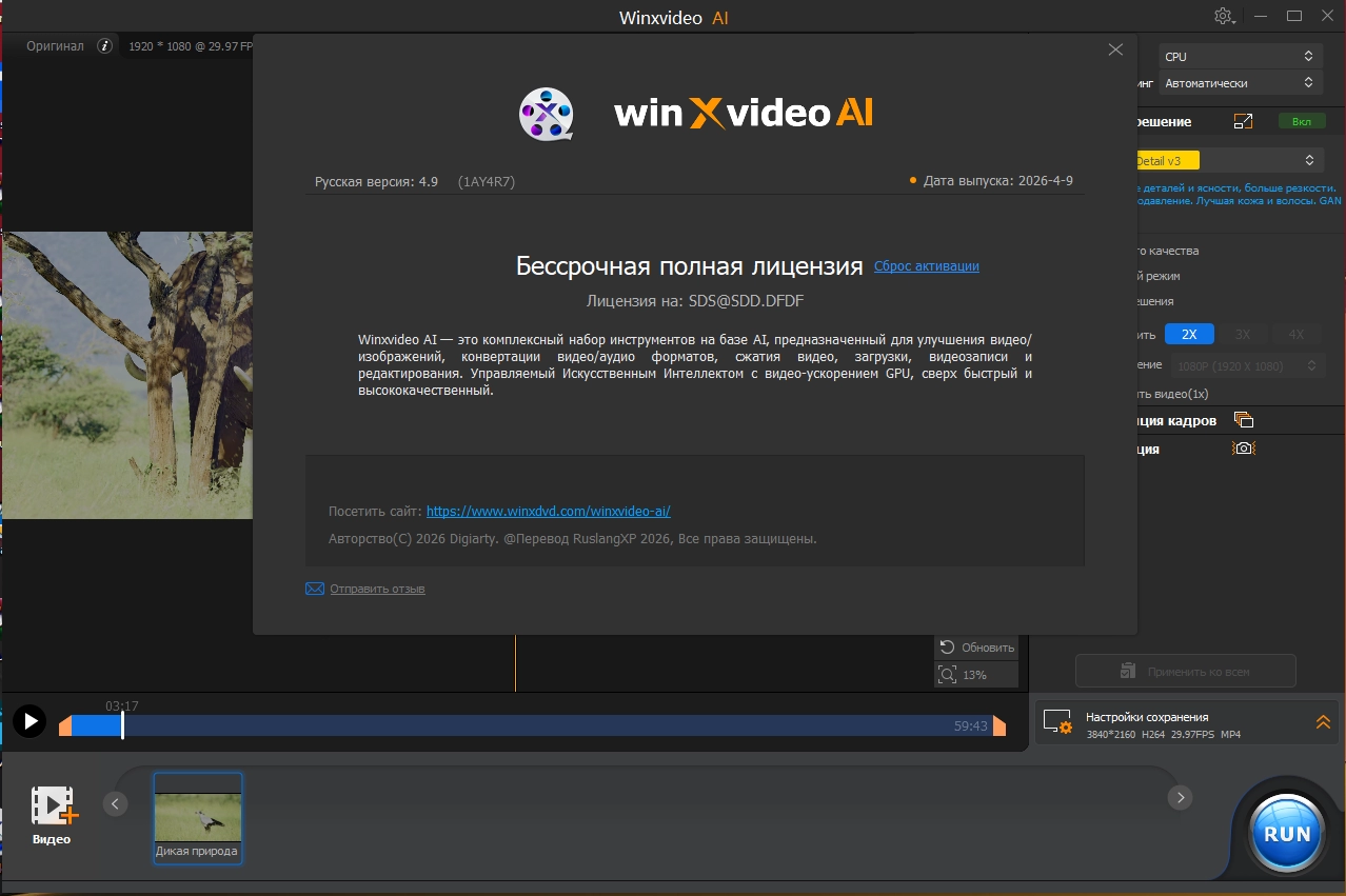 Winxvideo AI - это набор инструментов для масштабирования, редактирования и улучшения ваших видео.